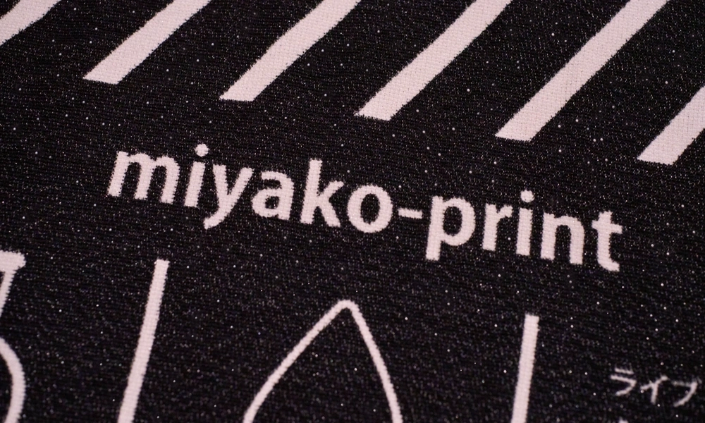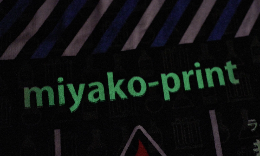 都プリントの強みは、熟練の職人技が光る「染料インクによる4色分解(CMYK)グラデーションプリント」です。網点が干渉して起こるモアレ(波紋)を防ぐ緻密な版調整で、美しい発色を実現。染料インクが繊維の奥まで浸透するため、タオル本来の柔らかな風合いと吸水性を損ないません。さらに、色の定着に不可欠な「乾燥・蒸し・洗い」の工程も自社で一貫対応。妥協のない品質が評価され、アーティストグッズやブランドの定番タオル、今治タオル認定商品などに広く選ばれています。